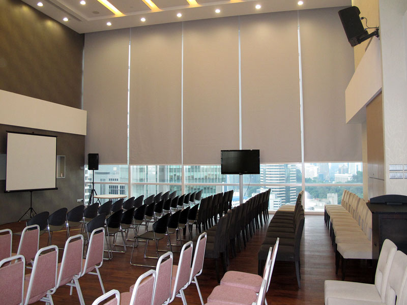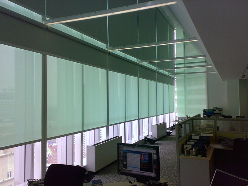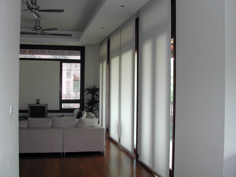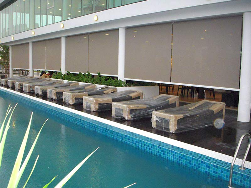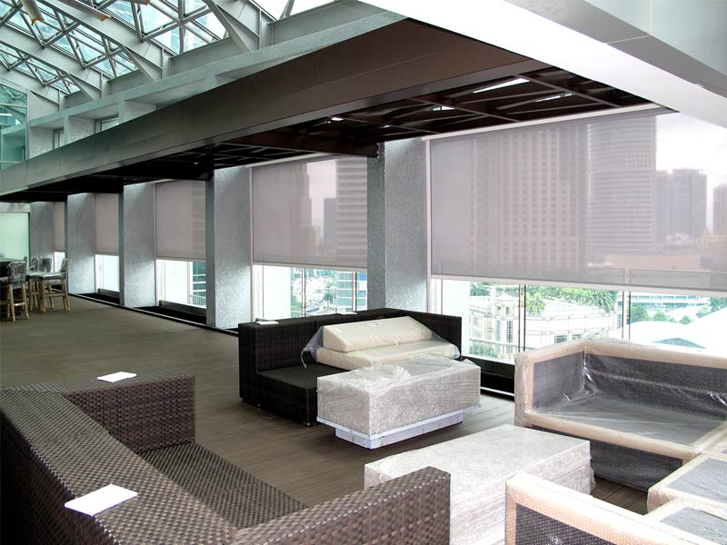 Our roller shades are versatile enough for indoor rooms and also outside your window patios to block the sun’s rays before they reach your interior. This helps to greatly reduce air-conditioning costs. Our exterior shades maintain visibility of what’s outside, protect your interior from UV rays, and reduce glare. You can also opt to layer them with draperies or accessories with a decorative hem for a more streamlined coverage.